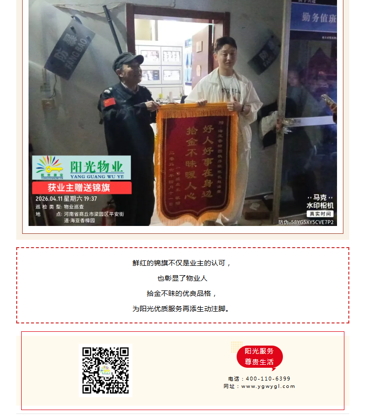锦旗映初心 | 香樟园物业服务中心拾金不昧,守护业主“心头宝”。